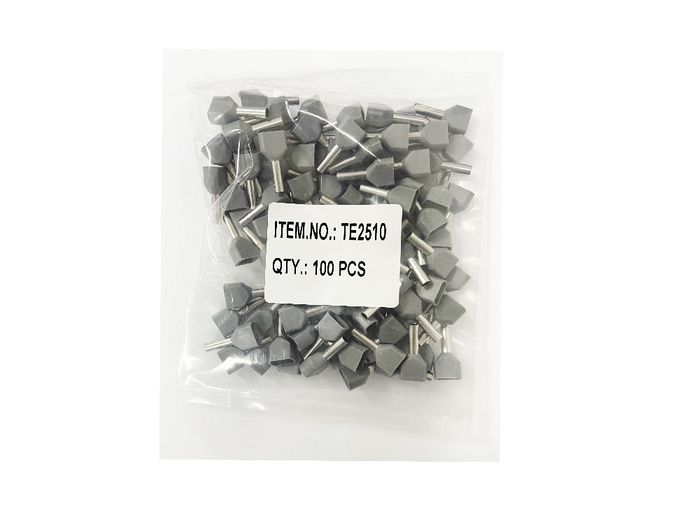 Grey Double Bootlace Terminal - 2 x 2.5mm² (2 x 14AWG) - 100 pk